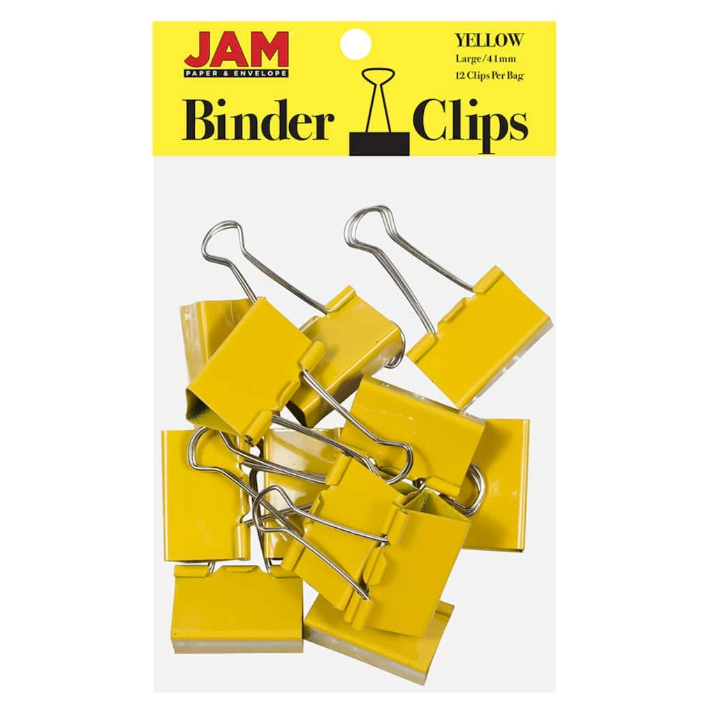 JAM Paper large binder clips spring some color into your work and home life! Whether you like color-coding your files or brightening up your dull paperwork, these vibrant and shiny clips will fulfill all of that and more. Each metal clip is 41mm, which is great for grasping larger stacks of paper and thicker material. It can adapt for other purposes, too. If you want to display photographs, notes or table seating cards, just stand the clip on its colored base so the handle’s pointing up, then stick your items into the handle’s grip. These clips make an impression without taking up a lot of room!