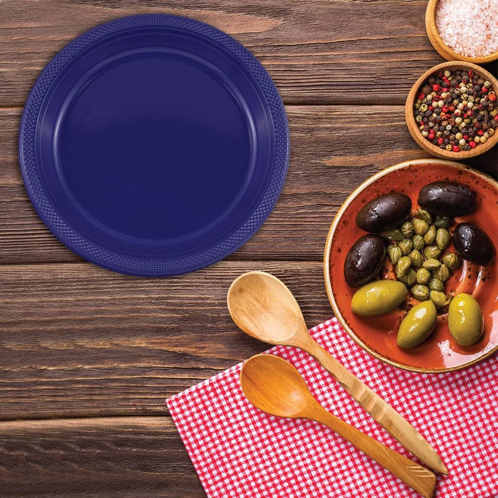 JAM Paper navy blue plastic party plates offer a colorful and convenient option for any occasion. If you’re throwing a fun party, barbecue, reception, banquet, or any other event, colorful plastic plates remove the chore of washing dishes while adding a pop of color to your decoration.