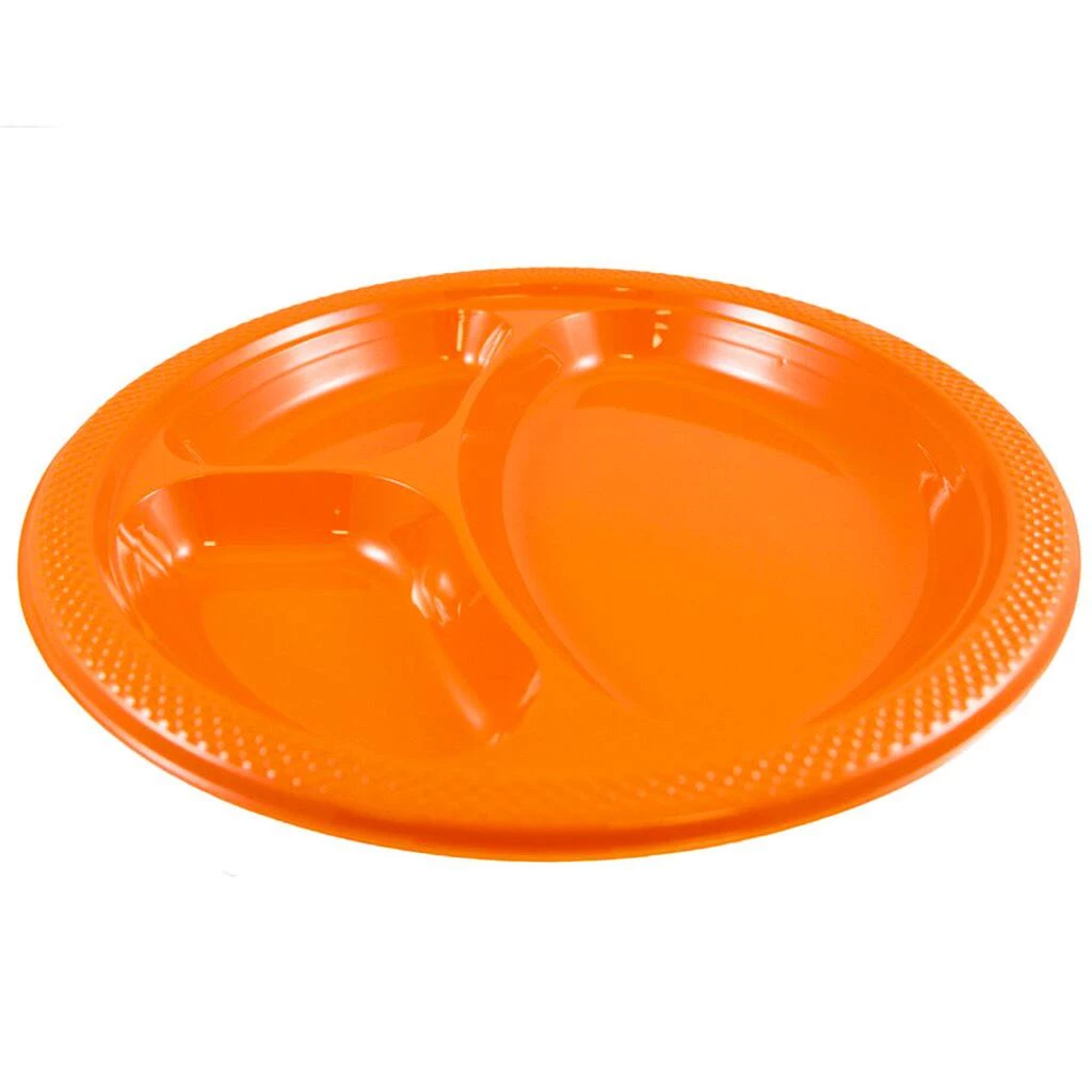 Tired of cleaning up after your party guests? These divided plastic party plates are a must-have for your next get together. Paper plates let food soak through creating a soggy mess. These sturdy plastic plates are durable and strong enough to hold anything you throw their way from cake to ice cream sundaes to cheeseburgers. Each plate features 3 compartments.