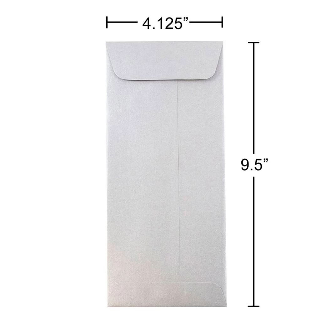 Whether you are using at the office, home, or classroom, these metallic policy envelopes have your back. Simply place announcements, invitations, checks, bills, and more inside where they will be kept safe while looking stylish. No matter what you place inside, our high quality envelopes are designed to impress. Each envelope has an open end opening, straight flap, gum closure, is made from high quality paper, and has a metallic finish.