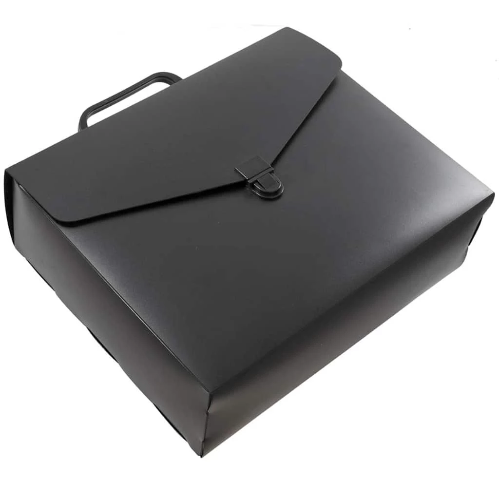 This professional and sleek looking black plastic portfolio lets you take and carry all of your most precious documents and papers! To make carrying your enclosed items from location to location simple, this sturdy plastic portfolio has a black plastic handle.