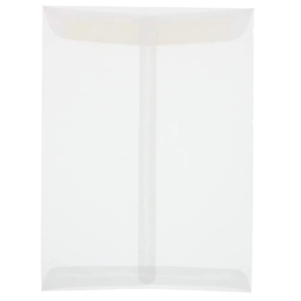 From newsletters to monthly data reports, these JAM Paper Clear Open End Catalog Translucent Vellum Envelopes can help you send out all of your important mailings! They measure a roomy 10″ x 13″, which can store your papers without any creasing or folding. And they feature an open-end opening that allows you to easily insert and remove material. Produced from high quality 28 lb. paper, these durable envelopes contain a vellum finish that’s smooth to the touch and see-through! Each one is also built with a commercial gummed flap that securely seals away your contents. This pack of 25 envelopes will serve you well on multiple occasions!