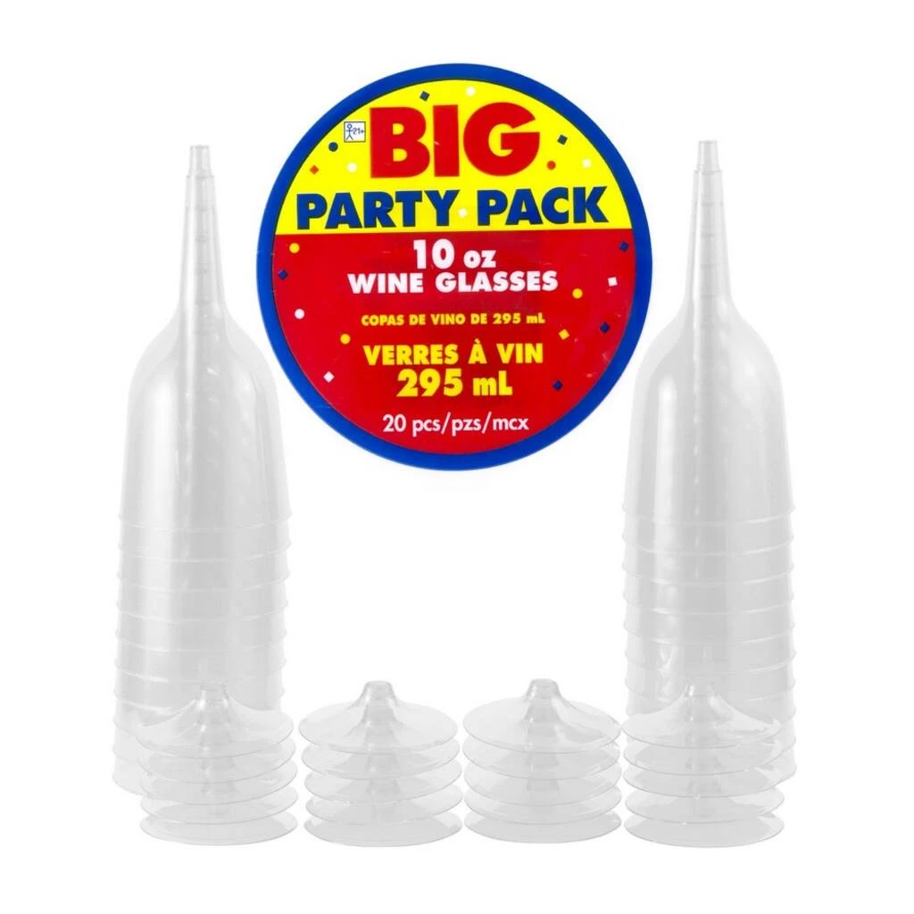 These sturdy plastic wine glasses will help you enjoy the party while also conveniently enjoying the beverage of your choice! This pack contains a total of 20 wine glasses. Each one is made of durable plastic and has the capacity to hold 10 ounces of liquid.
