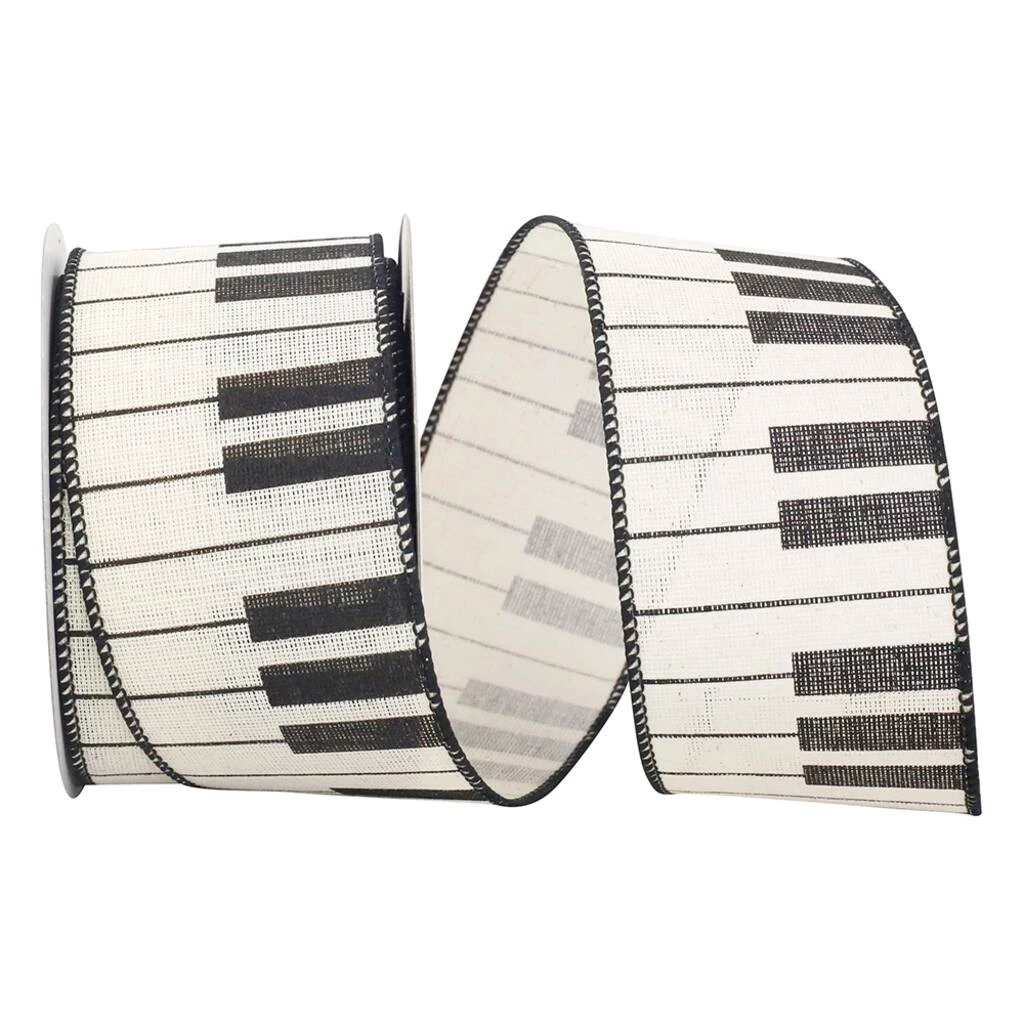 Let the music take over with this linen ribbon with a piano key print! Use it to decorate themed parties, wreaths, home décor projects and more. The perfect way to add wonderful texture to your creations. Wired edges for easy bow making.