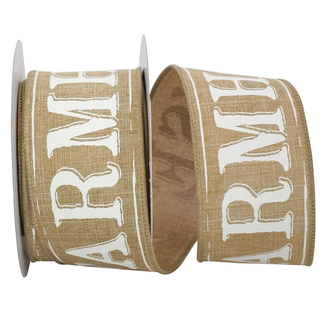 Looking to add a little rustic charm to creations? This linen Farmhouse ribbon is perfect for adding texture to gift wrap, wreaths and more. Wired edges make for easy bow making.