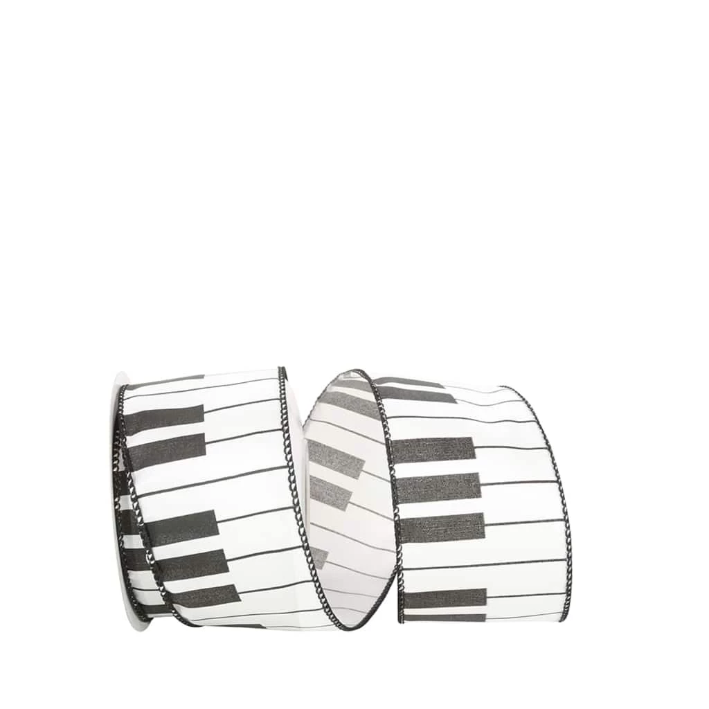 Let the music take over with this ribbon with a piano key print! Use it to decorate themed parties, wreaths, home décor projects and more. The perfect way to add wonderful texture to creations. Wired edges for easy bow making.