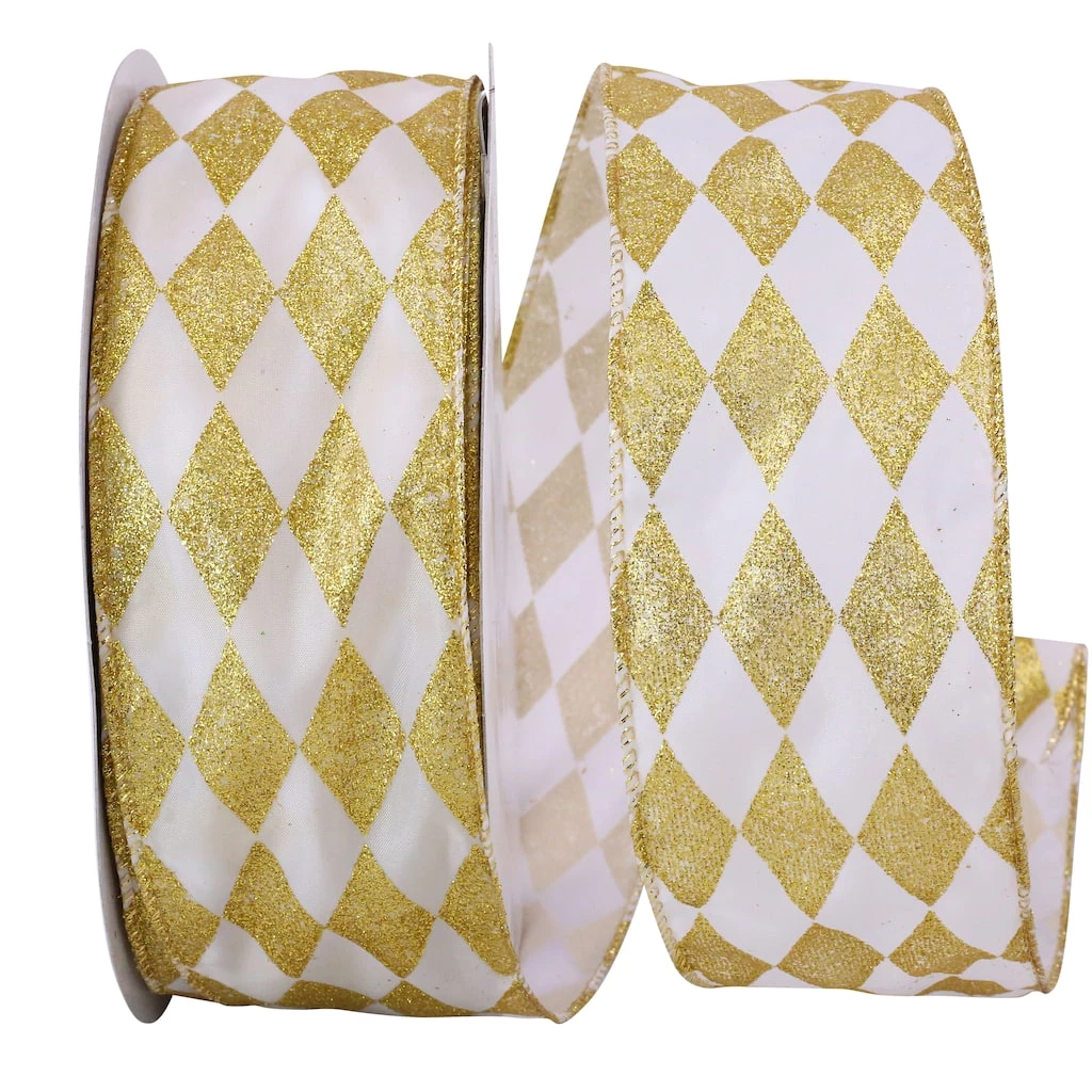 Glitter diamonds adorning a taffeta ribbon make for joyous holiday decorating. Wire edges for easy bow making and sculpting.