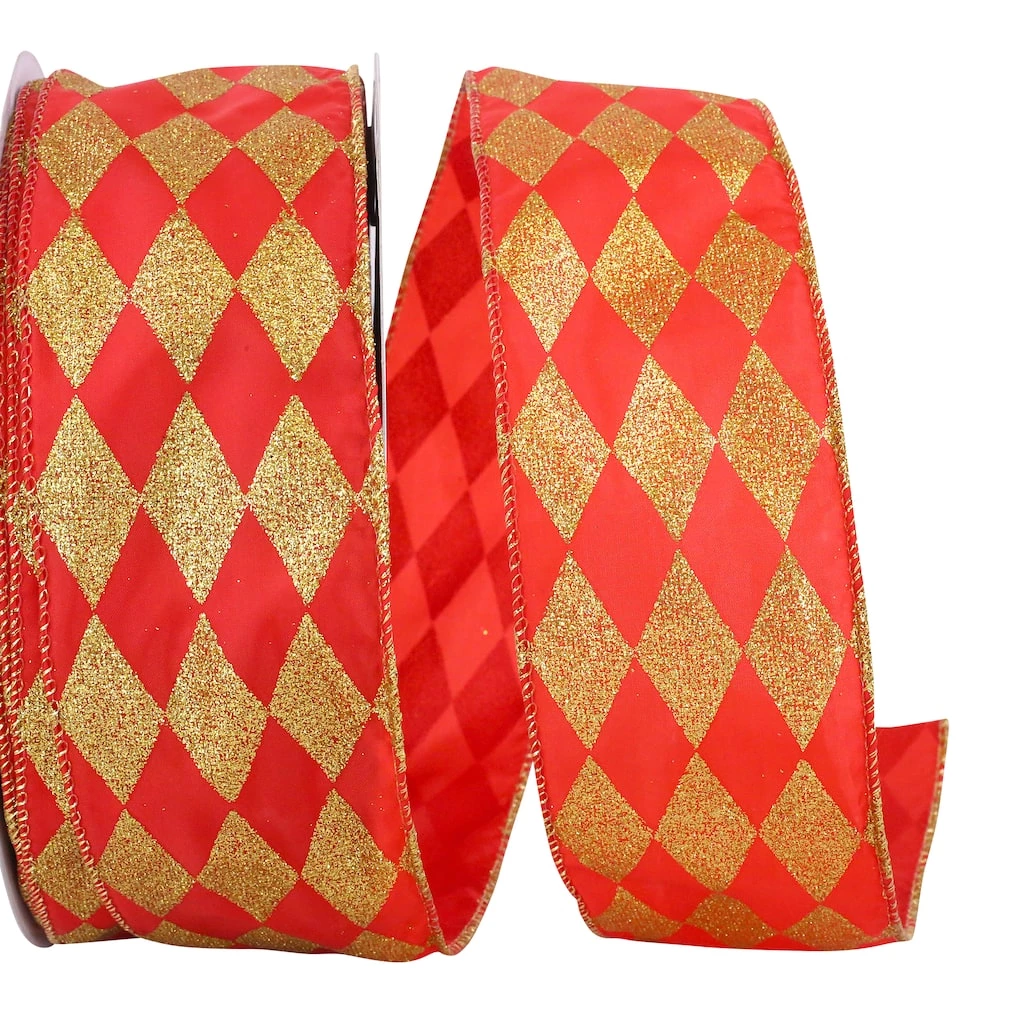 Glitter diamonds adorning a taffeta ribbon make for joyous holiday decorating. Wire edges for easy bow making and sculpting.