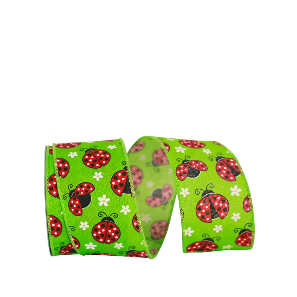 This brightly colored ribbon with ladybugs is perfect for any summer themed project. Bring a touch of whimsy to gift wrapping, wreaths, baskets and more! The wired edges help create bows that hold their shape.