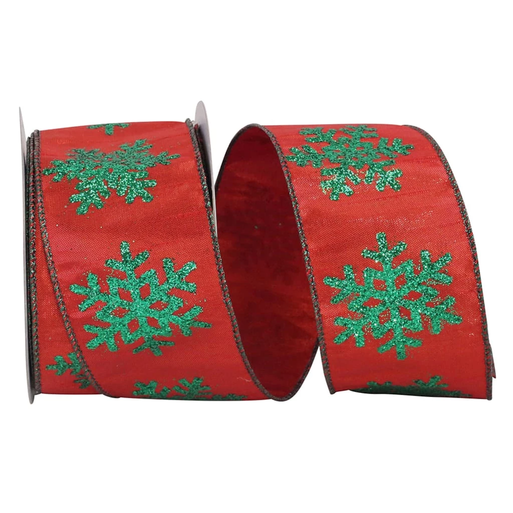 Your creations will be a winter wonderland with this glittered snowflake ribbon. The perfect embellishment for gift wrap, baskets, wreaths or holiday projects. The wired edge helps you create beautiful bows that will hold their shape.