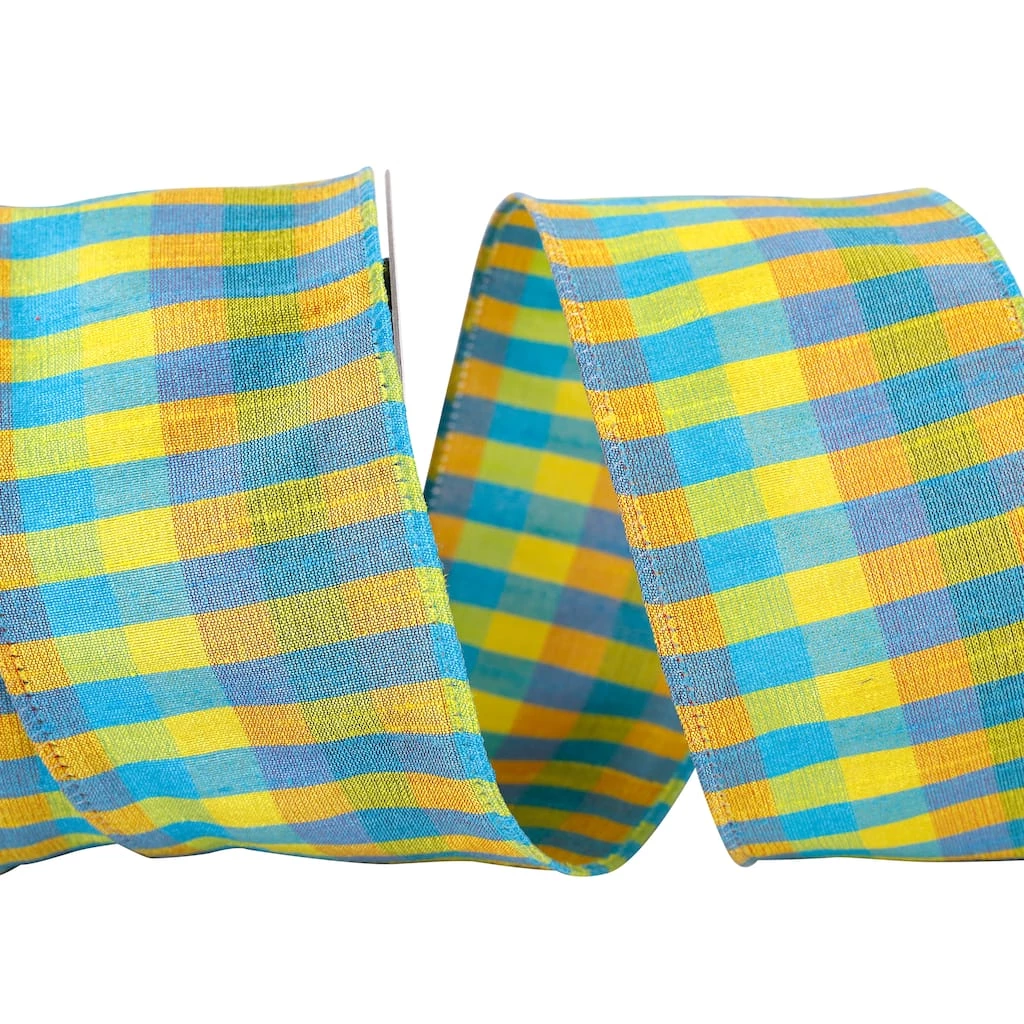 Trendy plaid and the wonderful texture of Dupioni is surely a winning combination. This beautiful blue and gold ribbon is perfect for seasonal projects, home dΓ©cor, wreaths, gift baskets & more! The wired edge will help you create bows that hold their shape.