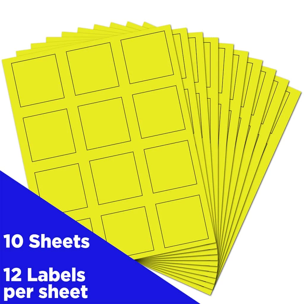 These labels measure 2 x 2 inches each and feature a perfectly square shape with sharp corners. Use these labels for square envelopes, packages, boxes, storage containers, organizational needs, and more! Their glowing, vibrant color stands out anywhere it is placed! These labels are self-adhesive and peel away easily from their white backing. Printer compatible, these labels are ideal for creating custom labels and stickers in your own home or office! They can also be written on with pens or markers.