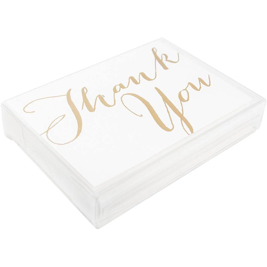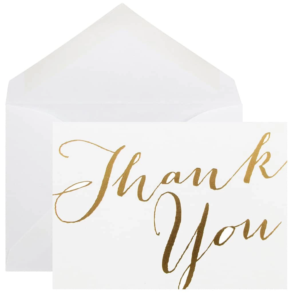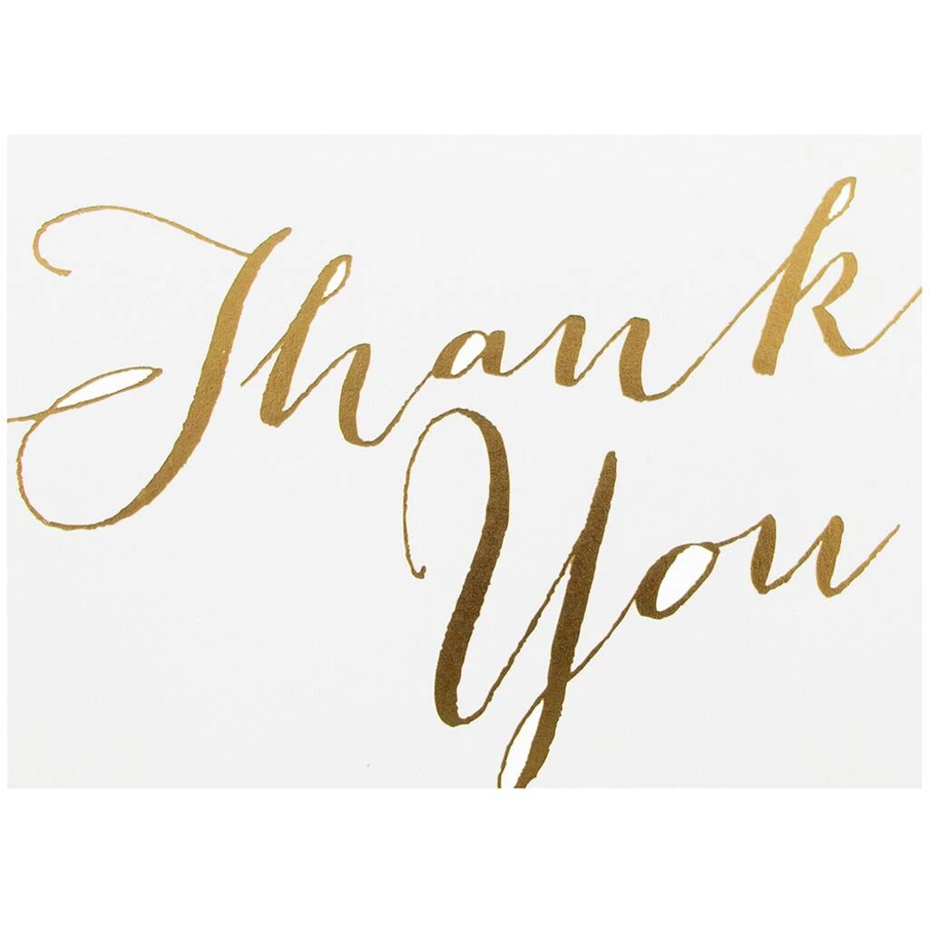 JAM Paper Scripted Thank You Card Sets are perfect for letting loved ones know how thankful you are. If you have recently had a wedding, bridal shower, birthday, graduation, or any special celebration, this gold script thank you card set is perfect for you. The gold foil ‘thank you’ matches your special occasion’s theme and adds a classy touch. Include your own personalized message in the blank space provided. Friends and family will certainly feel the love and gratitude you’re sending! This pack includes 10 cards and 10 envelopes to match. Each card measures 3 1/2″ x 4 7/8″, is made from 80 lb. cardstock and has a smooth finish.