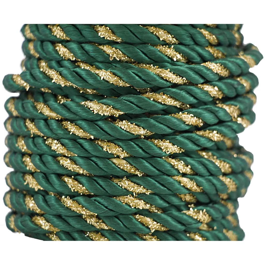 JAM Paper Green with Gold Decorative Rope Ribbon is excellent for holiday decorating and more! This thin rope is made out of 50% polyester, 35% rayon, and 15% metallic material. Each individually sold spool contains 15 yards of rope ribbon! This rope features an alternating smooth pine green and metallic gold color. This decorative rope measures 3/8″ in width. The green and gold color of this rope ribbon makes it an excellent choice for DIY projects and decorating for Christmas, Saint Patrick’s Day, Mardi Gras, and more! Use it to make your own garland, to add unique bows to gifts, and other special occasion purposes.