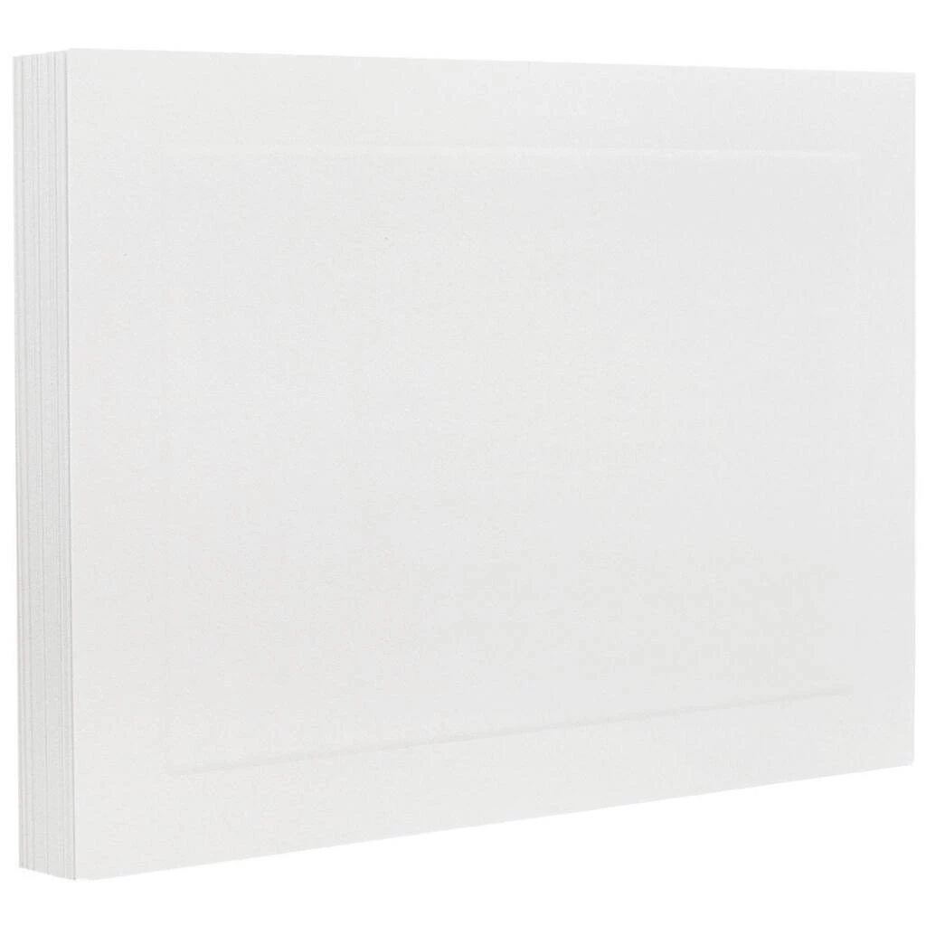 Why use a generic, store bought card when you use JAM Paper Blank Note Cards to create your own! These note cards are blank, beautiful and versatile and will fill all of your correspondence needs. From invitations to thank you cards to letter or greetings, these note cards are perfect to personalize for any occasion! These are not fold over cards, so you can use the back and front to write your message or announcement. They are a crisp white and feature an elegant, embossed border panel on the front of the card to frame whatever you want to write or draw.