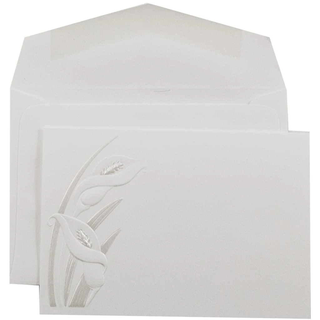 This invitation set brings a extra touch of elegance to your special day. The enchanting calla lily design gracing the left side of each card perfectly accents your customized invites or personal messages. This pack contains 100 small cards, each with matching envelopes to complete the set. Leave a lasting impression on friends and family with these exquisite invitations!