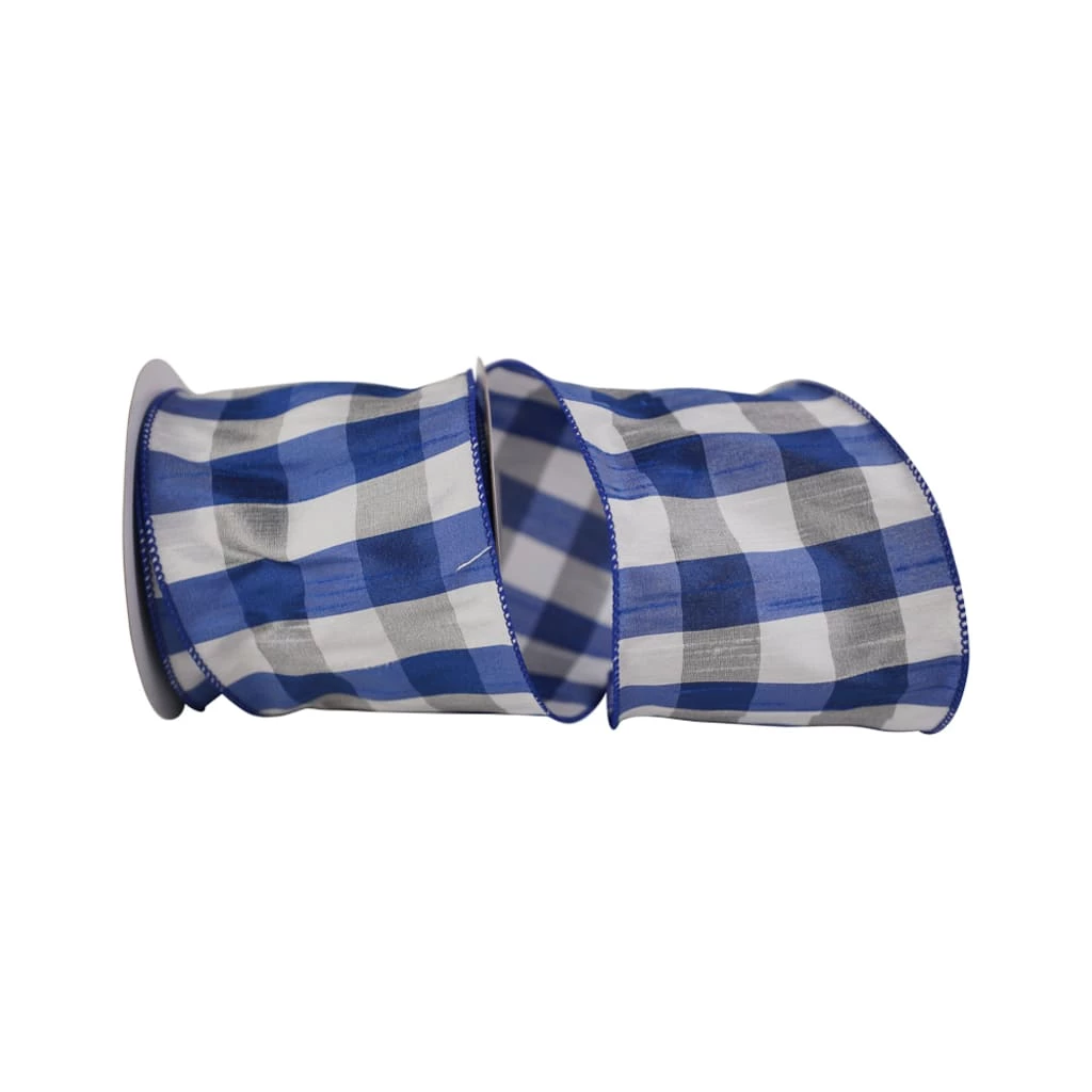 Classic check and the wonderful texture of Dupioni are surely a winning combination. This beautiful ribbon is perfect for seasonal projects, wreaths, gift baskets & more! The wired edges will help create bows that hold their shape.