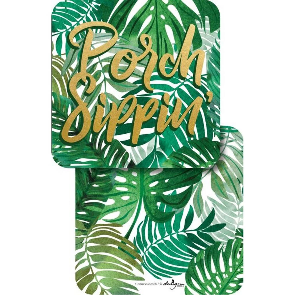 Delight in good friends and good drinks with JAM Paper Coasters! These Porch Sippin’ coasters feature a beautiful Monstera leaf design while the phrase “Porch Sippin'” pops elegantly in crisp gold foil. Made from premium moisture-absorbing chipboard material, these coasters save your surfaces from unwanted drink rings and wet stains. Whether you’re relaxing after a long day with your favorite drink or are celebrating a special occasion, these coasters are the perfect companions you need!