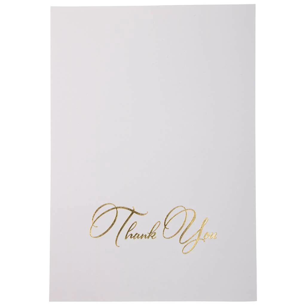 - White with gold “Thank You” script