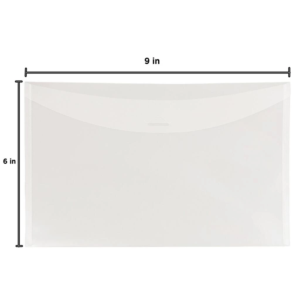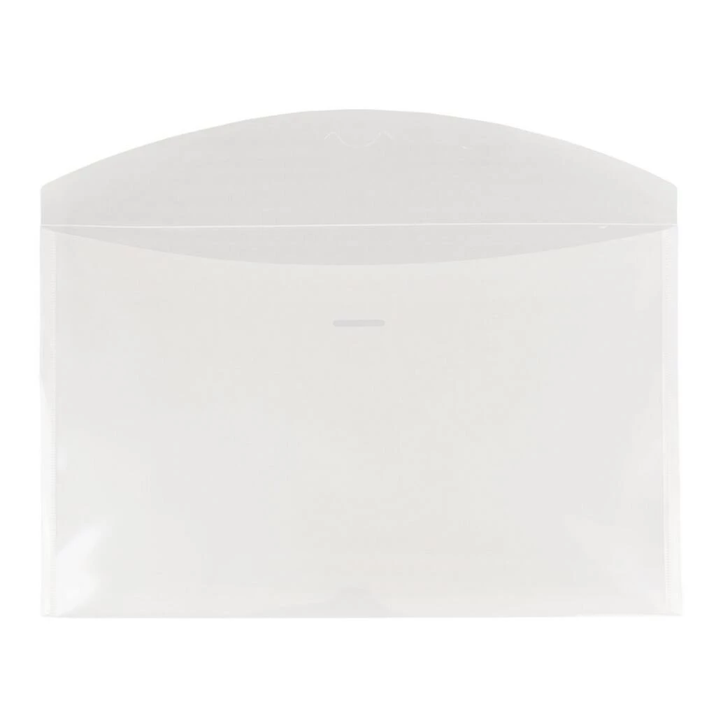 Made of pliable, sturdy, transparent plastic, these envelopes are perfect for folded letter-sized documents, bank checks, receipts, large note cards and other papers that you need to keep clean and protected. Their tuck flap closures are composed of a curved tab on the straight flap opening that folds into a slit in the front of the envelope for secure closing and easy opening. Because these envelopes are clear, your documents and stored items can be viewed from the outside. Protect all of your important papers with these versatile envelopes!Β