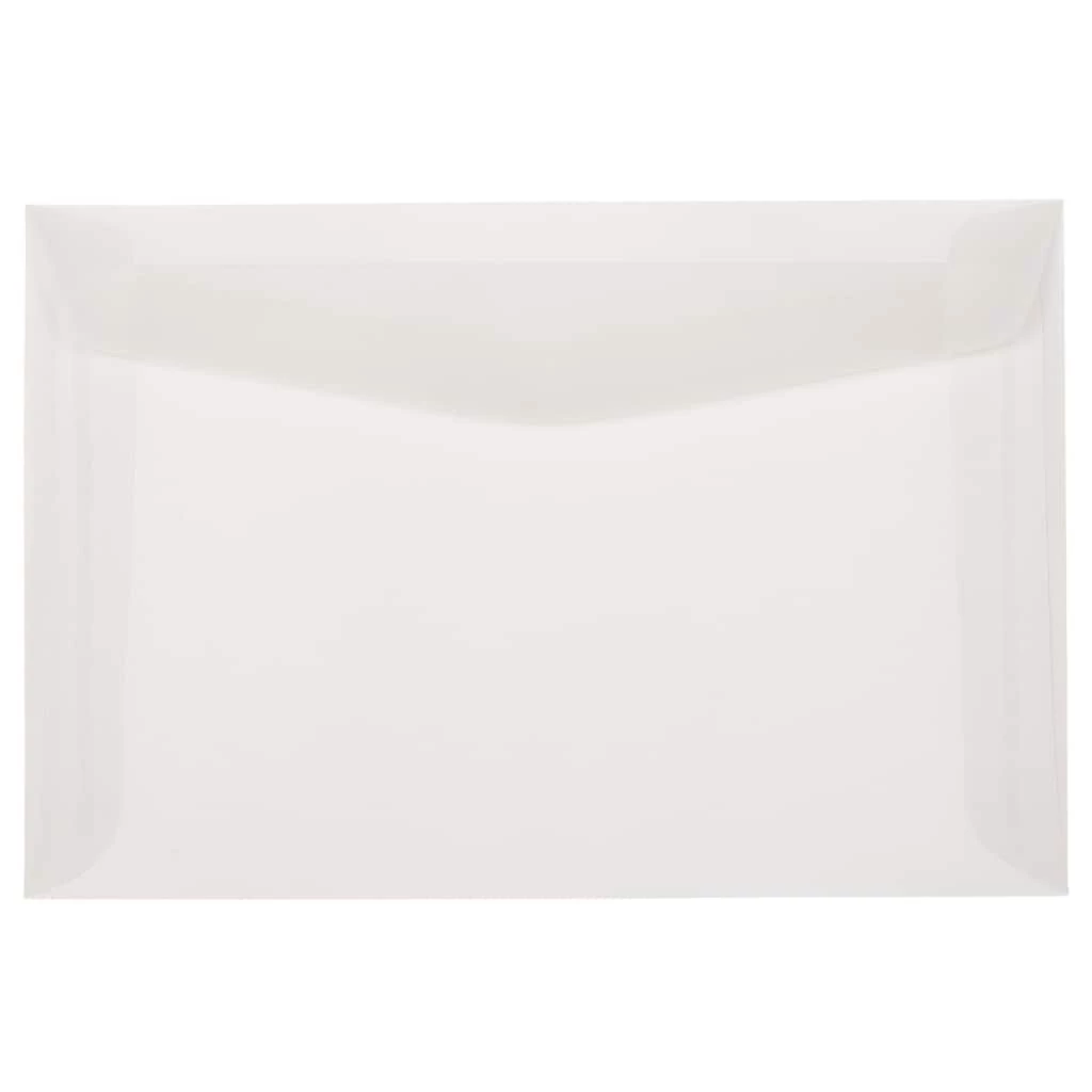 JAM Paper Clear Booklet Translucent Vellum Envelopes are an ideal choice for sending out both personal and professional mail! They’re free of color, and designed to showcase your contents. But don’t think that their translucence means that they’re easily vulnerable to damage. These envelopes, which measure 6″ x 9″, are durably-made from high quality 28 lb. paper! And each one is crafted with a commercial gummed flap that promises a simple but effective seal. What’s more, it contains a smooth vellum finish that’ll earn your satisfaction. So whether you need to mail family photographs or letters to clients, these envelopes guarantee a clean presentation! This pack holds 25 envelopes.