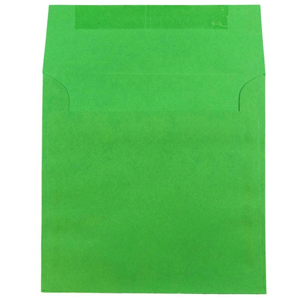 These envelopes are a bright and unique option for sending holiday cards and invitations! They are made out of smooth, 30% recycled paper. Each one features a flawlessly square shape. With straight flaps and reliable gum closures, these envelopes are sure to keep your mailed items secure as they travel through the mail. They will draw the immediate attention of their recipients with their exceptionally bright and festive green color. Use them for Christmas party invitations, holiday greetings, and for any other mailing during any season!