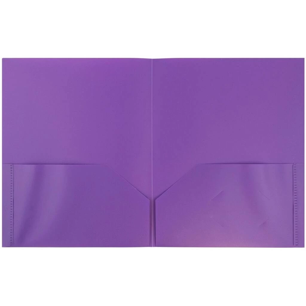 JAM Paper Plastic Two Pocket School/Presentation Folders are a great product if you are looking to add some color and organization to your school or office supplies. Measuring 9.5″ x 11.5″, these folders are made from high quality plastic. Each folder includes 2 pockets, designed to hold and secure materials inside, with an additional business card slot built into the right side pocket, a great feature if you are a professional who frequently travels or networks. Folders have a smooth plastic finish are classified as medium weight. They’re ideal to use whether you are a student or professional to organize papers, memos, marketing materials, homework, packets or any other important documents. This variety assortment pack includes some of our most popular colors: blue, green, orange, yellow, purple, and pink.