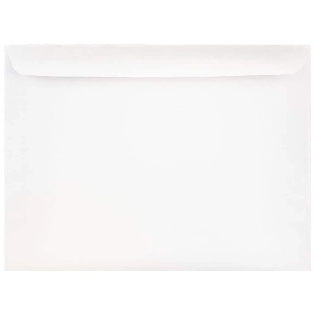 These envelopes are made out of smooth, high quality paper and feature a basic bright white color. Perfect for emailing standard sized and slightly larger sheets of paper without any need for folding or risk of creating untidy creases. Each one opens on one of the longer sides and features a straight flap with a reliable, moisture activated gum closure. Use these versatile white envelopes to send letters, documents, forms, certificated, manuals manuscripts and more from your office or home!