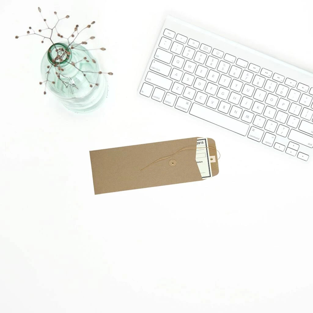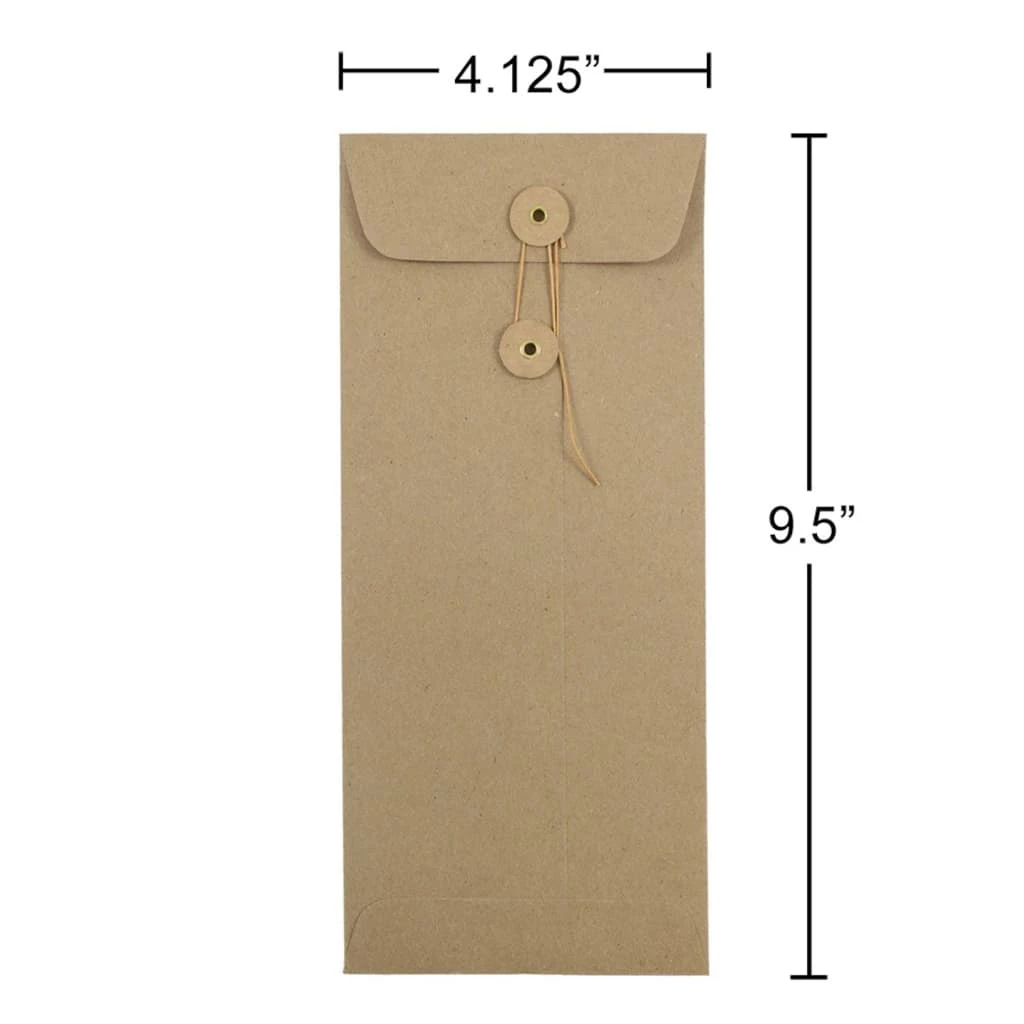 These envelopes are made out of 100% recycled, slightly textured, 28lb paper. This pack contains a total of 25 envelopes. Each one features a straight flap and a reliable, easy-to-use two button and string-tie closure! The size of these envelopes makes them ideal for receipts, invoices, sales slips, tickets, boarding passes, and much more! Be good to the environment with these sharp looking envelopes.Β