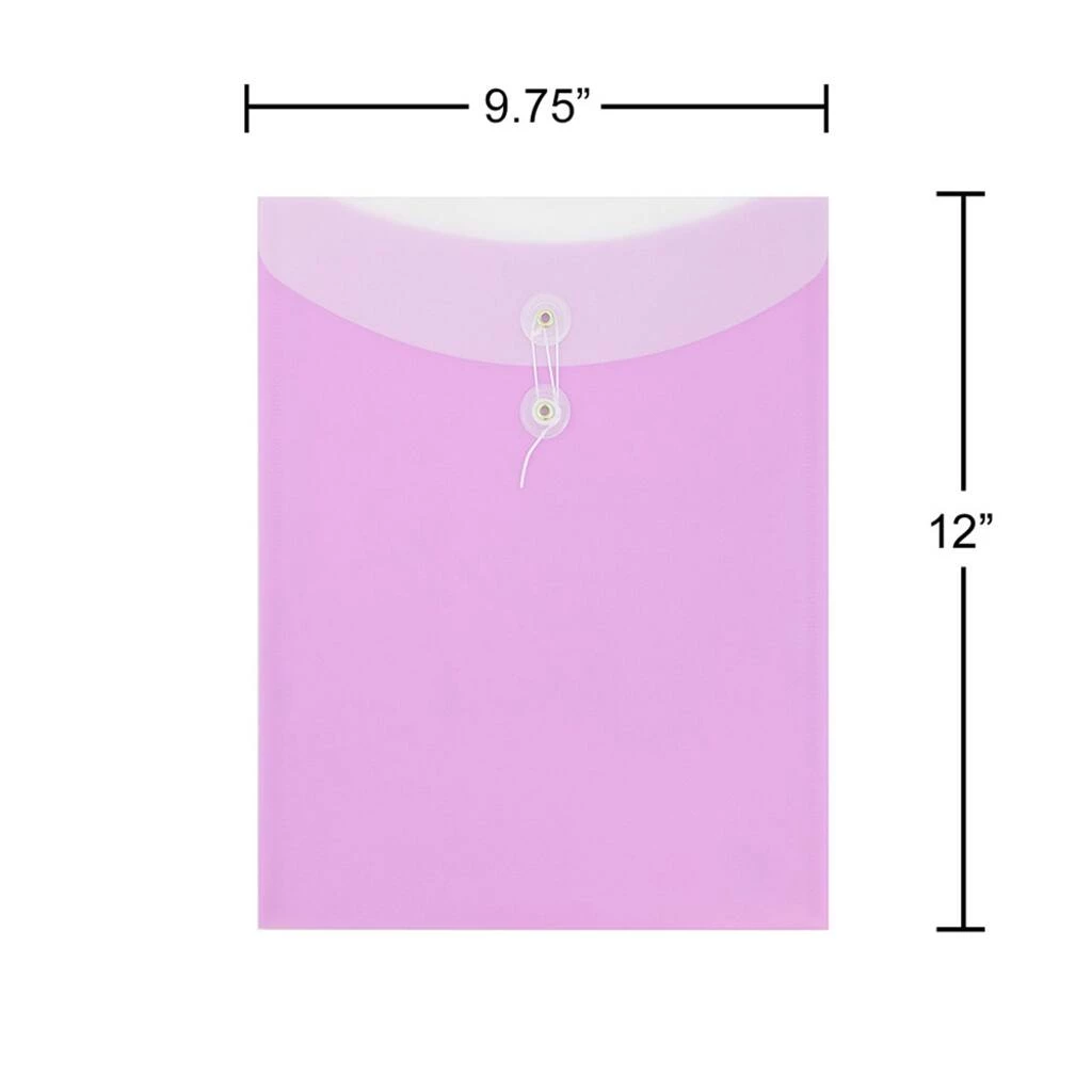 Store and protect your letters and documents reliably and with just a hint of color with JAM Paper Two Tone Lilac Letter Open End Plastic Envelope. Made from durable yet flexible plastic material, this envelope will keep your documents from getting scratched, torn, or bent is storage or while in transport! Its two toned, clear and light purple coloring gives it a personable yet professional appearance. Each one features a curved flap opening and a two button string tie closure. Give your documents the protection and the style they deserve with this 12 pack of two-toned envelopes.