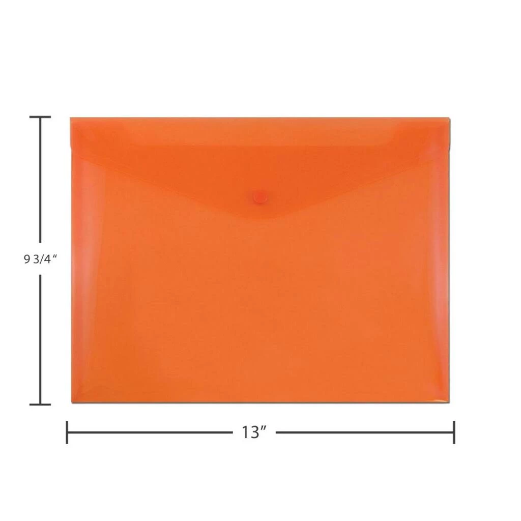 These JAM Paper plastic envelopes with snap closures are 9.75″ x 13″ in size and come in packs of 12. They are made of pliable, semi-transparent brightly colored plastic and are perfect for storing or transporting standard sized documents. Each one has a Vflap opening and a one-button snap closure to keep your documents secure and in place. Use them at home, at your office, or any place where you are feeling overwhelmed by disorganized papers. Get your records, projects, and more in order. Their color is sure to bring a lively excitement to any setting.