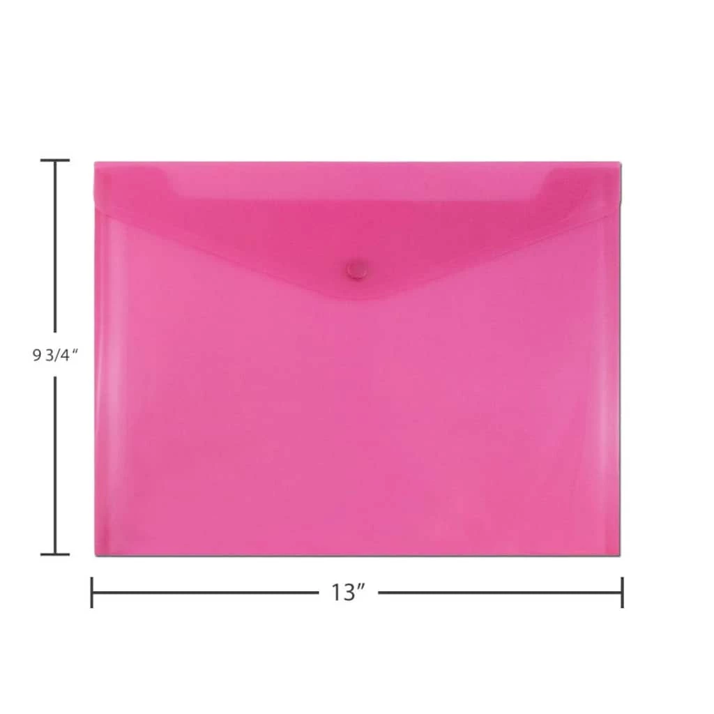 These envelopes help you stay organized at work or at home. Made of semi-transparent, protective plastic. Use the colors to color-code your documents for improved organization. Each one has a straight flap opening and a one-button snap closure to keep your documents secure. Use them for storing your documents in one place or for taking them on the go!