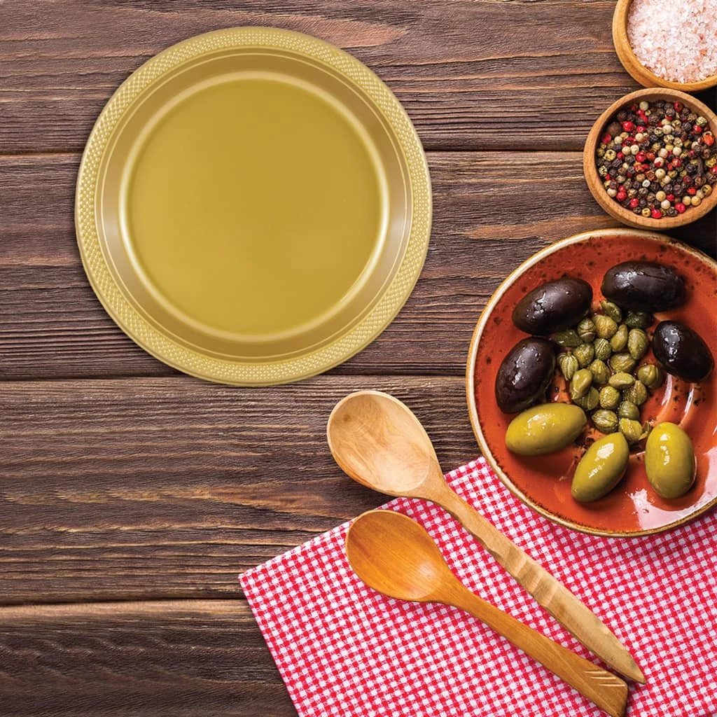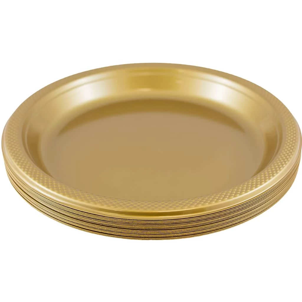 JAM Paper gold plastic party plates offer a colorful and convenient option for any occasion. If you’re throwing a fun party, barbecue, reception, banquet, or any other event, colorful plastic plates remove the chore of washing dishes while adding a pop of color to your decoration.