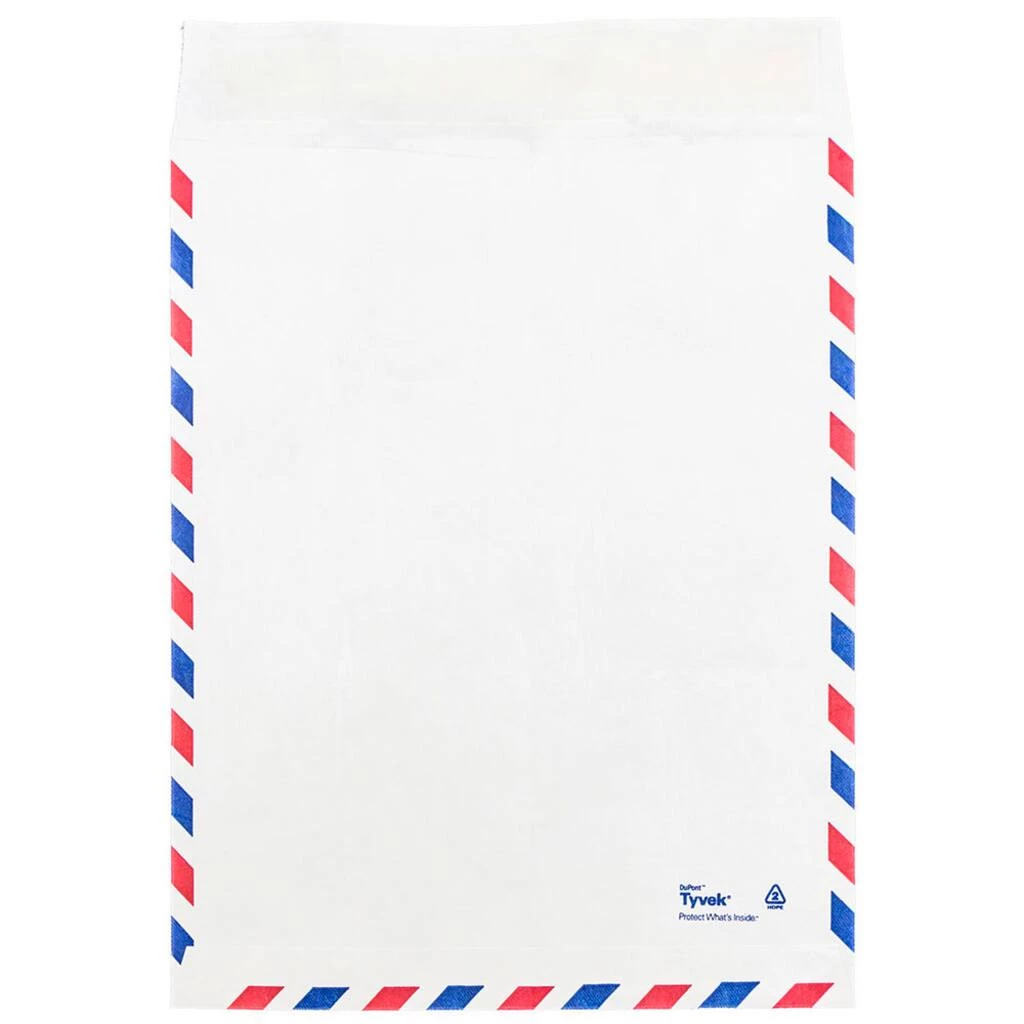 Save time and hassle when mailing with JAM Paper Open End Tyvek Envelopes. Not only do these envelopes feature a unique airmail design on both the front and back, but they are also water- and tear-resistant. Your contents will never be exposed to damage or stains and will be sent to recipients in its original state. From magazines and catalogs to documents and projects, these envelopes cater to it all. This pack contains 25 white Tyvek envelopes. Each envelope measures 9″ x 12″, has an open end opening (no clasp, gummed), straight flap, self adhesive strip closure, is made from 28 lb. paper, is 10% recycled, and has a smooth finish.