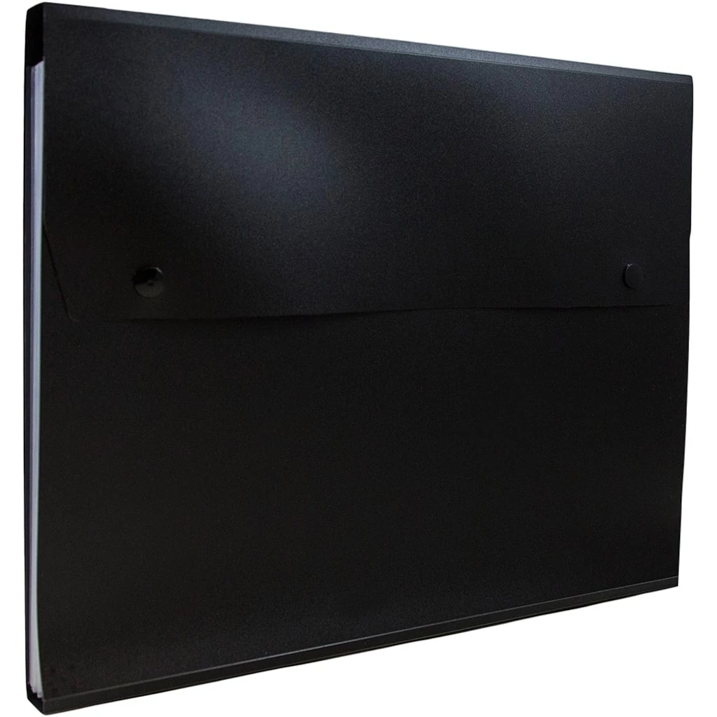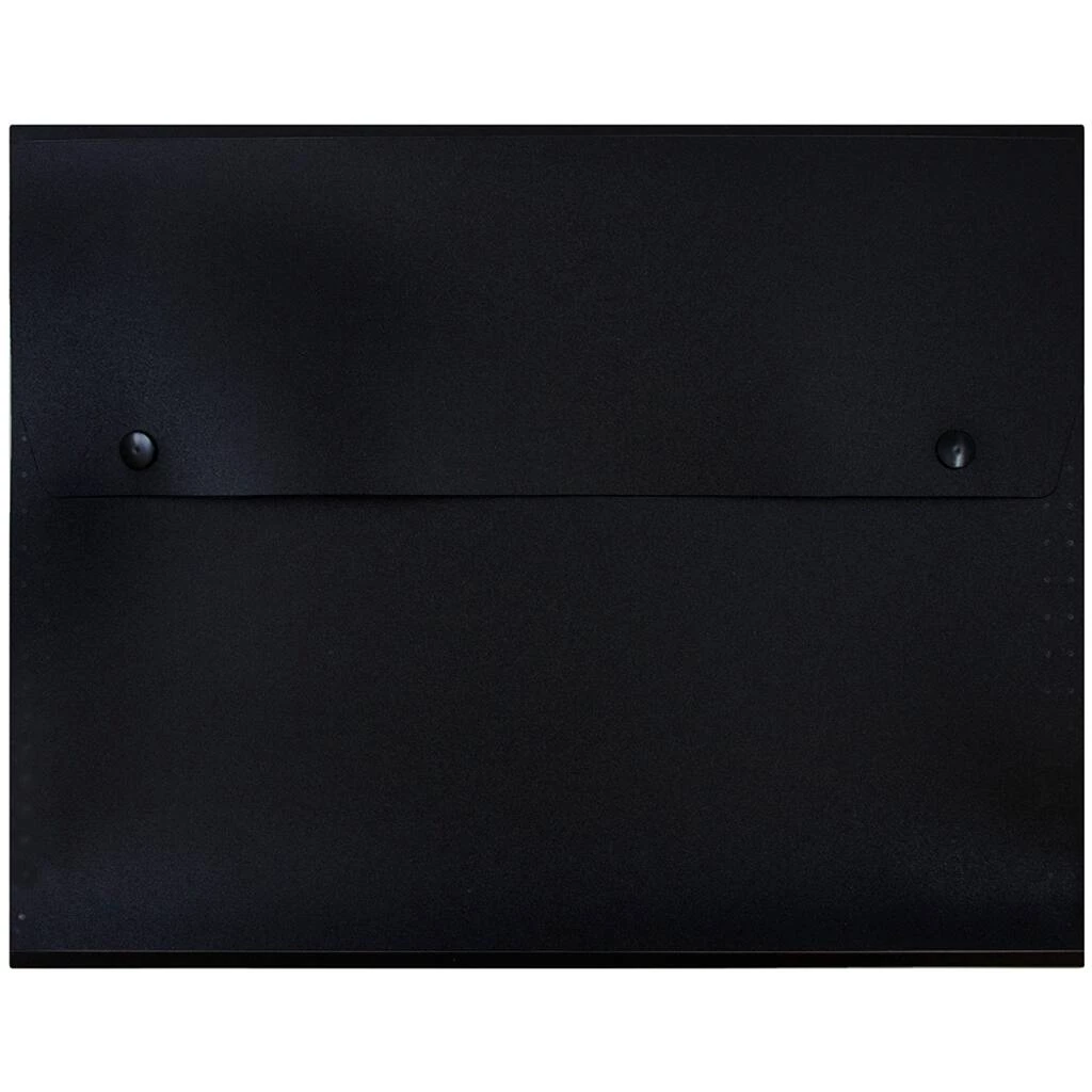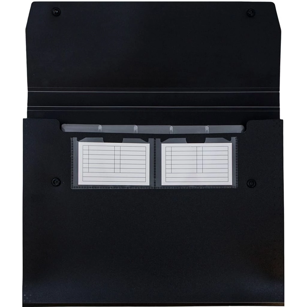 Receipts, coupons, and paperwork! Oh my! With so many papers, it might seems like there will never be an easy way to organize them. Well, think again! JAM Paper 6 Pocket Accordion Folders keep all of your papers safe, in one place, and looking professional and sleek. Measuring 9″ x 13″, these expanding files give you plenty of space for that big project coming up, all that paperwork that needs filing, or space for your coupons and receipts! These expanding files are sold individually. Each one is made out of durable plastic and features a jet black color on the outside. The six pockets on the inside are made of clear plastic and feature colored tabs at the top. There are two clear plastic note cards slots facing frontward when the file is opened. Each of these individually sold files closes with a wide straight flap and two small black snap buttons.