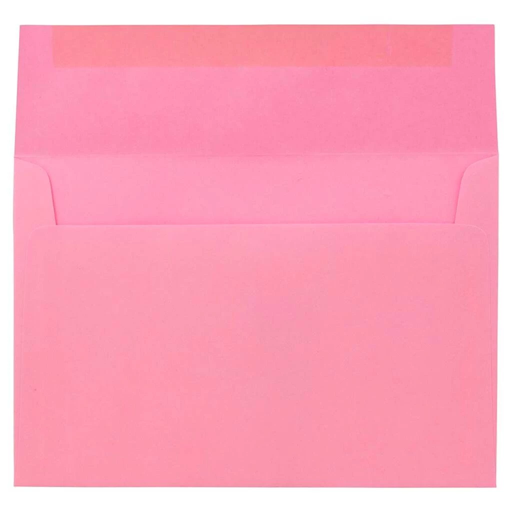 These envelopes are constructed from smooth, high quality paper. These envelopes feature straight flaps and dependable gum closures. Each one features a beautiful bright color that will stand out and bring a sense of style and lighthearted fun to any mailed item. Use these envelopes to send invitations to bachelorette parties or bridal showers, to send birthday cards and Mother’s Day cards, to mail friendly letters or Valentines, for business promotions and advertisements, and more!