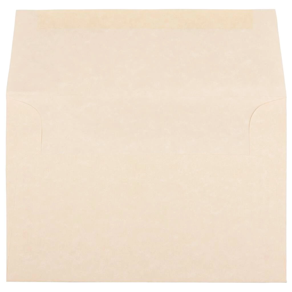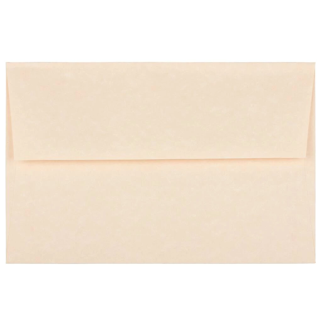 These A8 envelopes are made out of smooth, 30% recycled, paper. Each one features a straight flap opening with a reliable gum closure. This pack contains a total of 50 envelopes. These envelopes have a sophisticated, vintage parchment appearance. Great for invitations, greetings cards, Thank You cards, and personal letters, these envelopes can be used for home, office, and special occasion mailing needs.