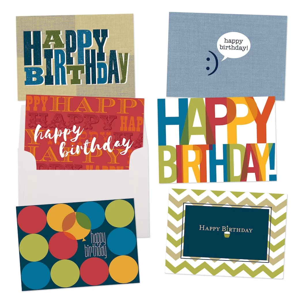 This variety pack of happy birthday cards are the perfect fit for any birthday. They come blank so you can write your own message filled with warm greetings and love. Make it thoughtful, funny, or romantic. Each card comes with a matching envelope, so you don’t have to struggle to find a pair.