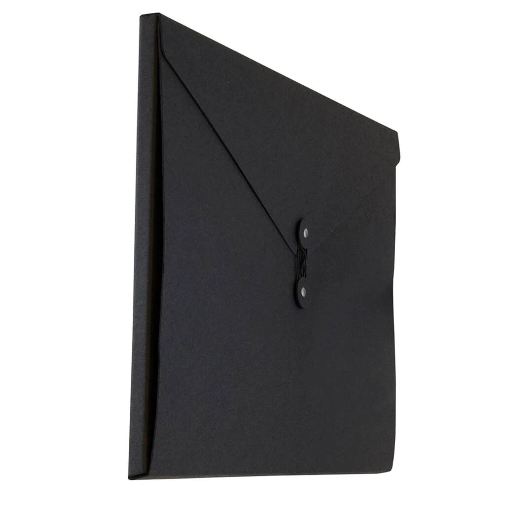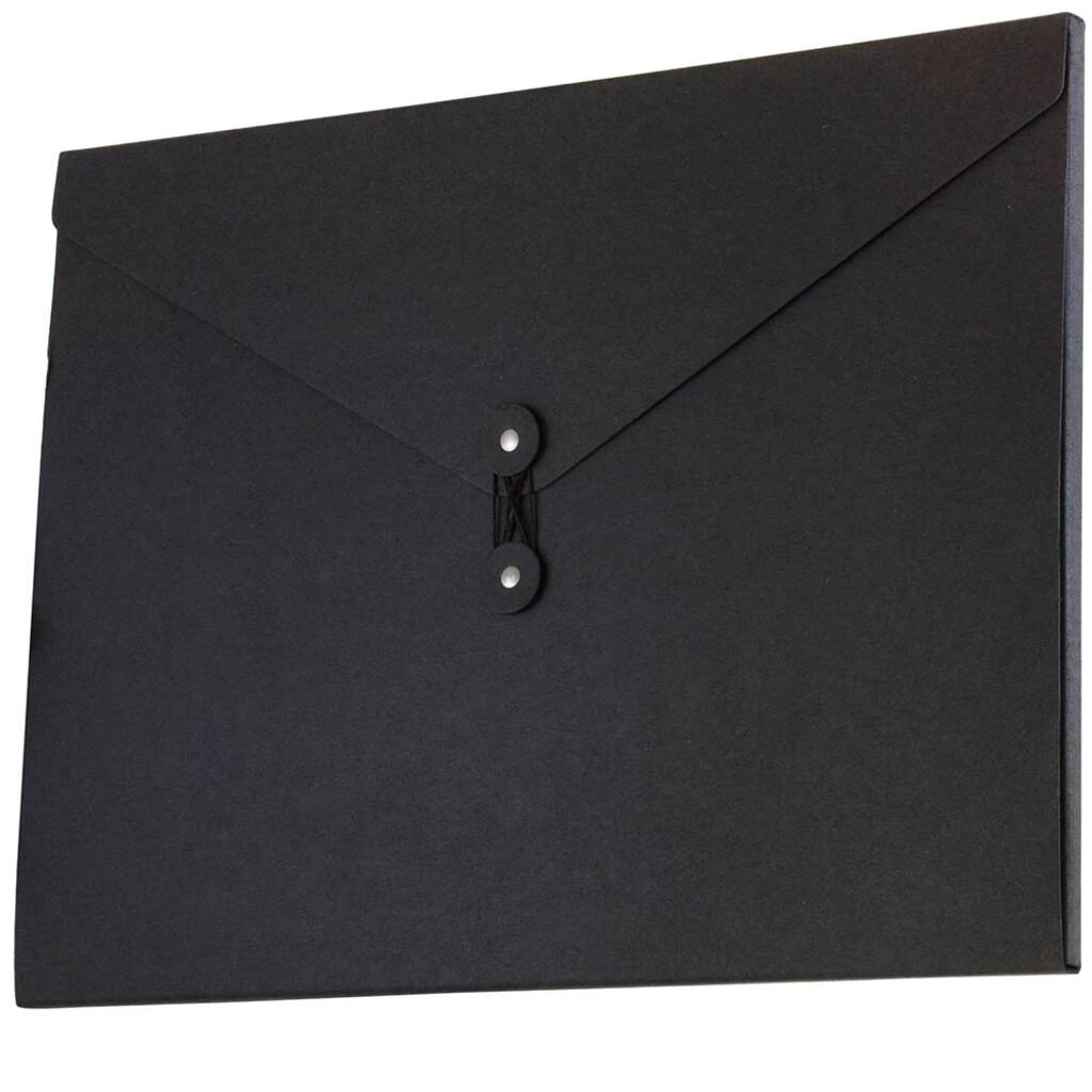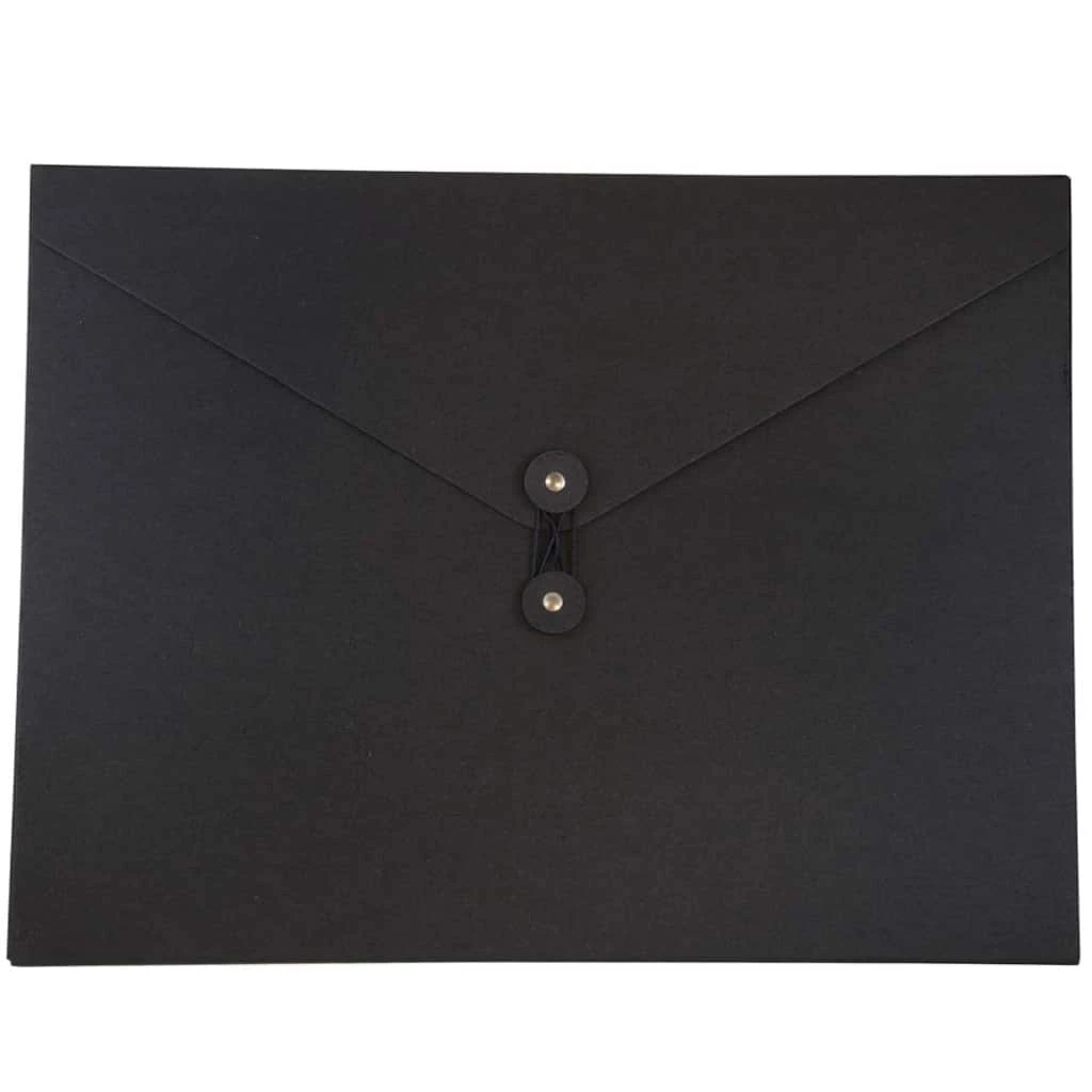 The JAM Paper Black Recycled Kraft Portfolio with Button and String Closure measures is made out of durable, smooth, earth friendly, 100% recycled chipboard! This portfolio is sold individually and features a professional jet black color that looks great in any work space or office. For easy opening and secure closing, this portfolio has a v-flap and a reliable two button and string tie closure. Both buttons of this closure match the surface of the case and the string is also jet black. The large size of this portfolio makes it excellent for carrying all of your important documents, projects, and small office supplies safely from place to place.