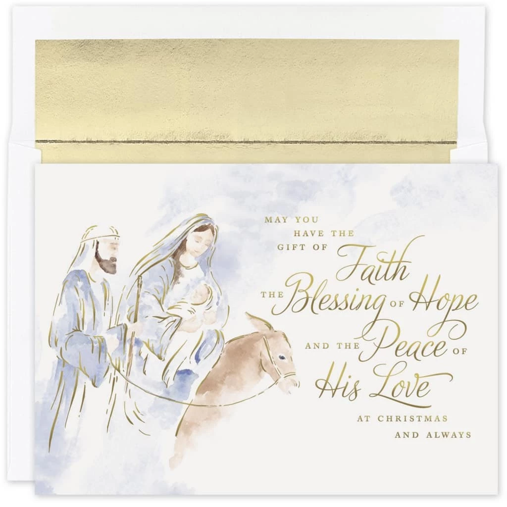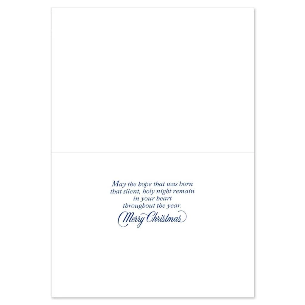 This card set is a perfect way to send joy and greetings to family, friends, and loved ones this holiday season! Inside message reads: “May the hope that was born that silent, holy night remain in your heart throughout the year. Merry Christmas” Any kind of message you decide to send will bring joy and smiles to everyone involved. Having a great card to send to all of your family and friends, coworkers and acquaintances, will give you a special advantage during the Christmas season.