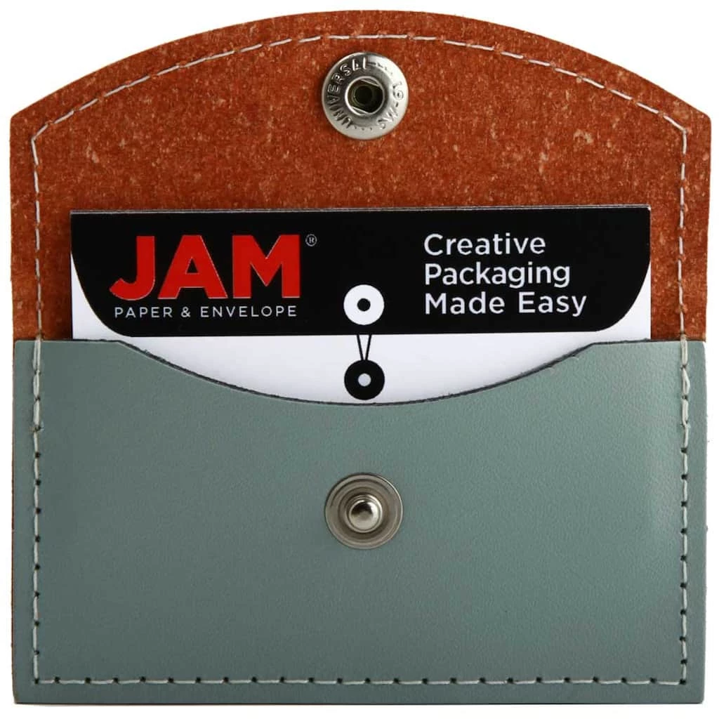 JAM Paper Leather Business Card Cases are professional while still being stylish and fun! These leather card cases feature a snap closure, making it easy to store and access your business cards as well as a rounded flap. The sleek brown and gray two-toned coloring is classy and eye catching. These are perfect to use when you’re attending conferences, corporate events, career fairs, or even just at the office! These cases hold 20 standard sized business cards and are sold individually.