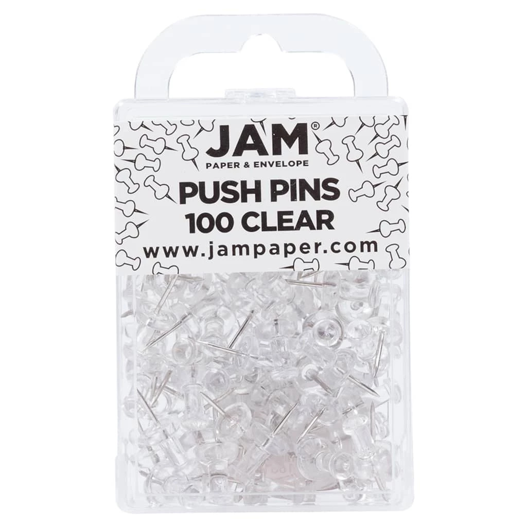 When you want your work to stand out, instead of what’s holding it up, these clear push pins from JAM Paper are perfect for you. Let your artwork speak for itself without any distraction. With these push pins, made from sharp metal and durable plastic, you’ll be able to hang anything from tapestries to picture frames. Each one is able to withstand much more weight than it looks like these little pins can handle. Perfect for all of your hanging needs around the house, at the office, or the classroom.