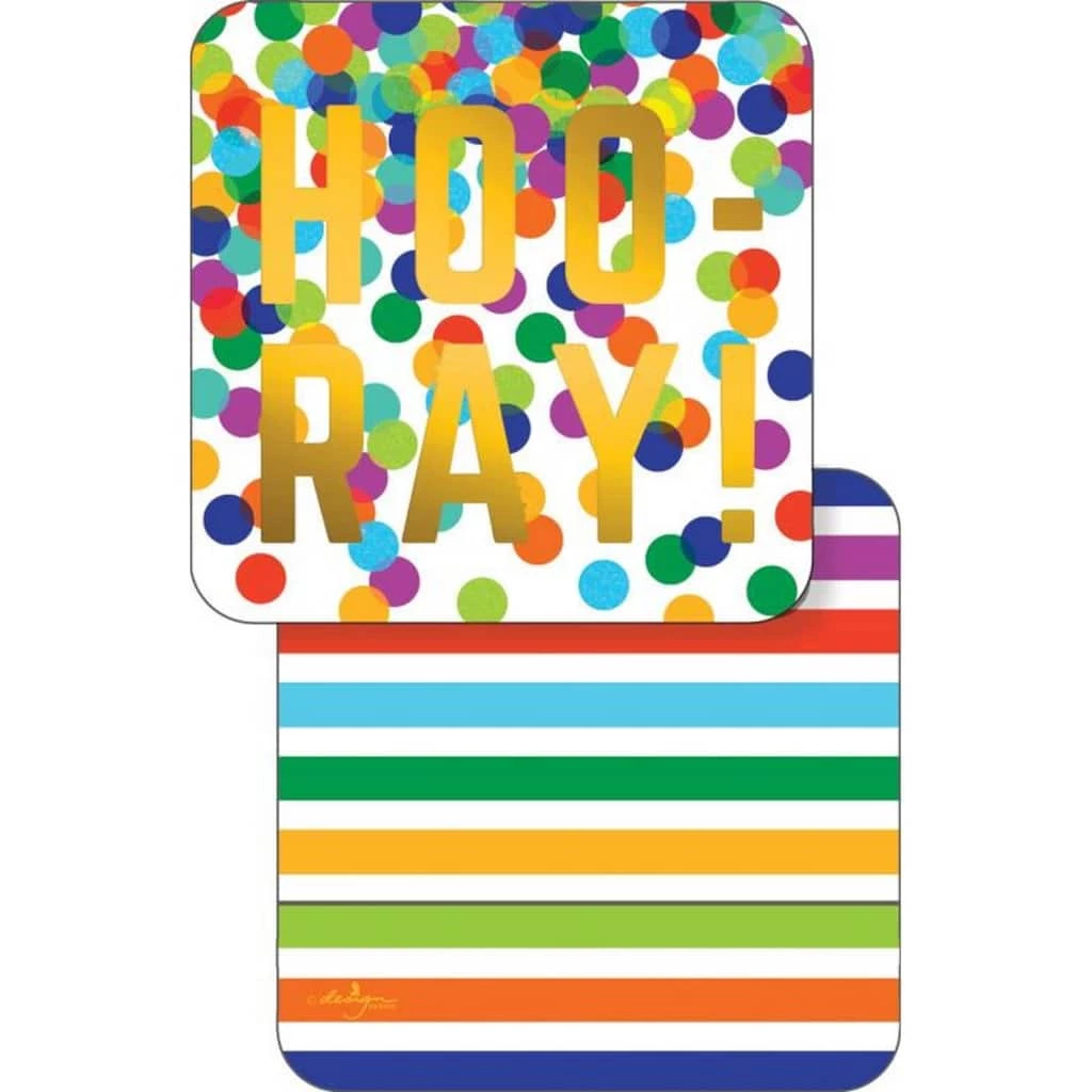 This colorful double-sided coaster from JAM Paper adds a finishing touch to any party. Made with moisture-absorbing chipboard, these coasters are lightweight and built to last. Perfect for your table or as a gift!