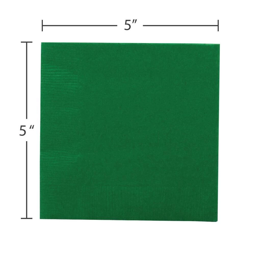 Each one of these napkins feature a bold and forest-esque green color. This shape and size makes them great for placing under the glasses and cups on your table to soak up condensation. Their color makes them great for use at birthdays, graduation parties, reunions, picnics, and more!