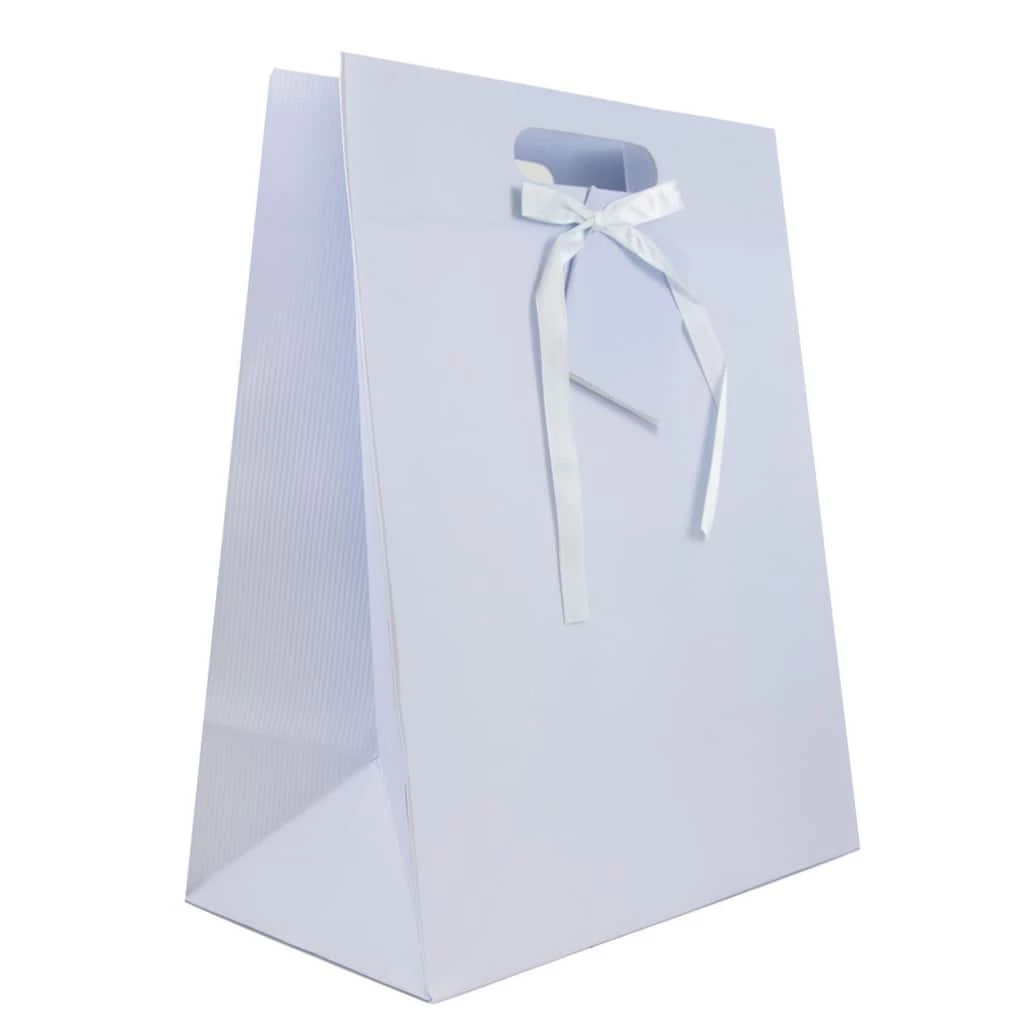 - Die-cut handles and ribbon bow