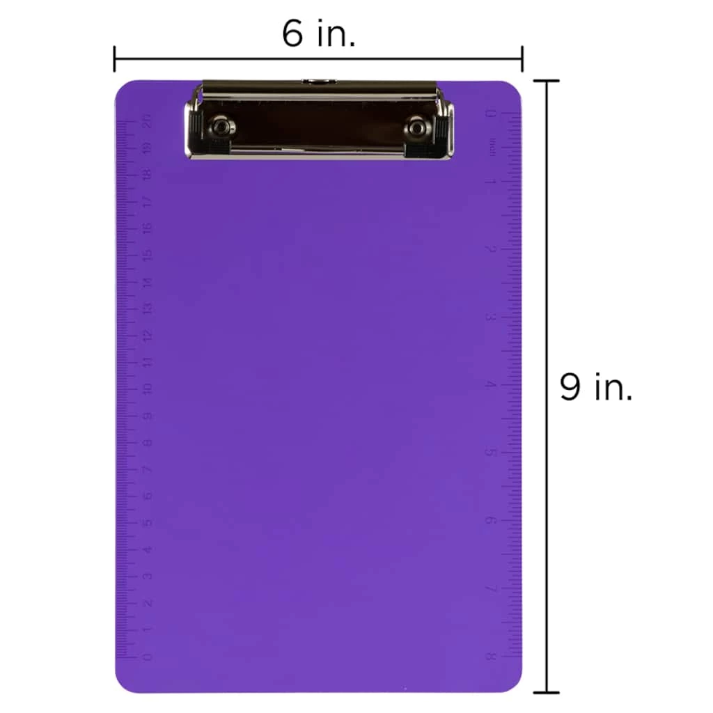 Add some color to your checklist using the JAM Paper mini plastic memo clipboard with low profile metal clip! This vibrant mini clipboard is made out of sturdy acrylic plastic finished with a smooth polish and is built to last. This clipboard measures 6″ x 9″ and is perfect for taking with you on the go without the extra bulk or weight! This clipboard includes inch and centimeter rules built-in on the front sides and features a strong metal clip with rubber corners to tightly secure your documents with ease. From architects and teachers to students and coaches, our colorful clipboard is perfect for all your needs!