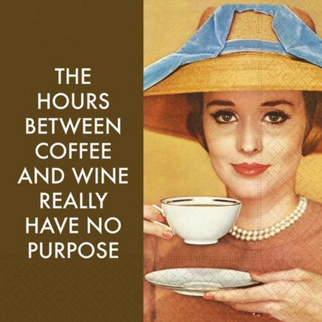 Delight in good friends and good drinks with JAM Paper Cocktail Napkins!ย Share a laugh and a drink with your guests at your next cocktail party with these funny “The Hour’s Between Coffee and Wine Really Have No Purpose” napkins.