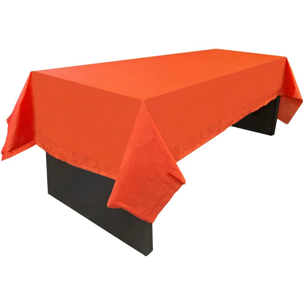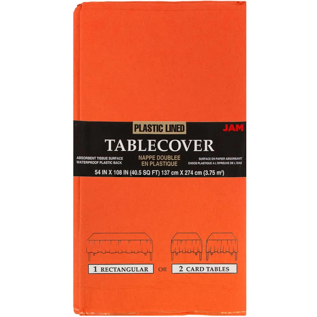 This bright orange table cover is ideal for your fall festivities. Simply drape it over a rectangular table or two card tables– you’ll be ready to party without the worry of cleaning up afterwards.