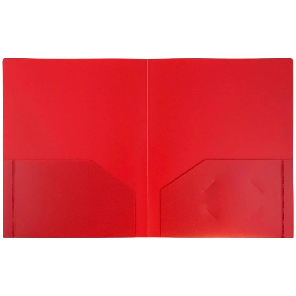 Let these pocket folders from JAM Paper help keep you organized! The tear-resistant folders are made from the highest quality poly plastic, keeping your most important papers safe from unwanted rips and creases. Each folder has two sturdy pockets and features a business card slot on the right side to keep important information at hand. Organize important files, projects, presentations, assignments, essays, and more! From personal to business occasions, these folders are perfect for all your needs.