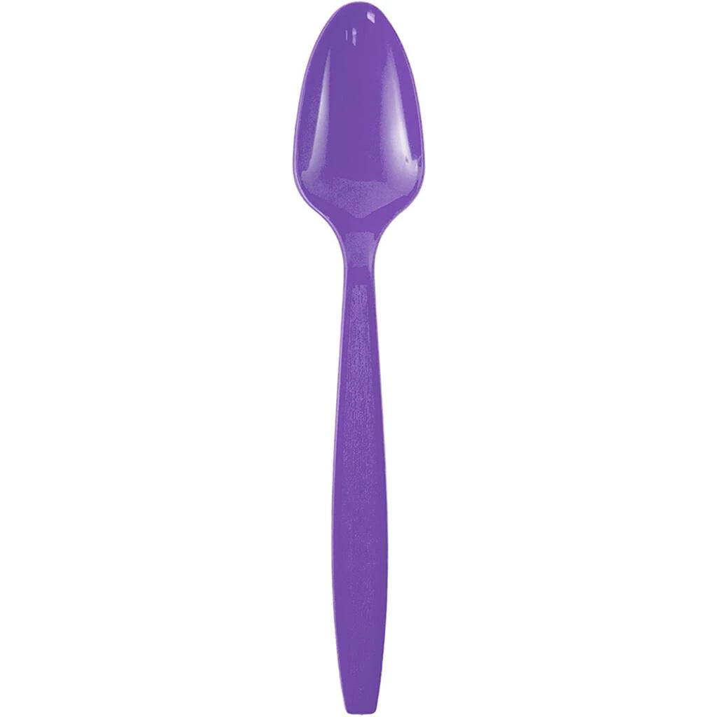 Get ready for your next event with JAM Paper Big Party Pack of Premium Plastic Spoons! This bulk pack of Purple plastic spoons makes a colorful addition to your party and conveniently saves you from washing dishes after an eventful day. Each disposable spoon measures approximately 7″ long and is made from high quality, durable plastic that won’t break during use. Great for desserts, appetizers, entrees, and drinks. Use these colored spoons to match themed parties, birthdays, weddings, corporate dinners, bridal and baby showers, holiday dinners, office lunches, everyday use and more! This premium cutlery pack includes 100 Purple spoons.